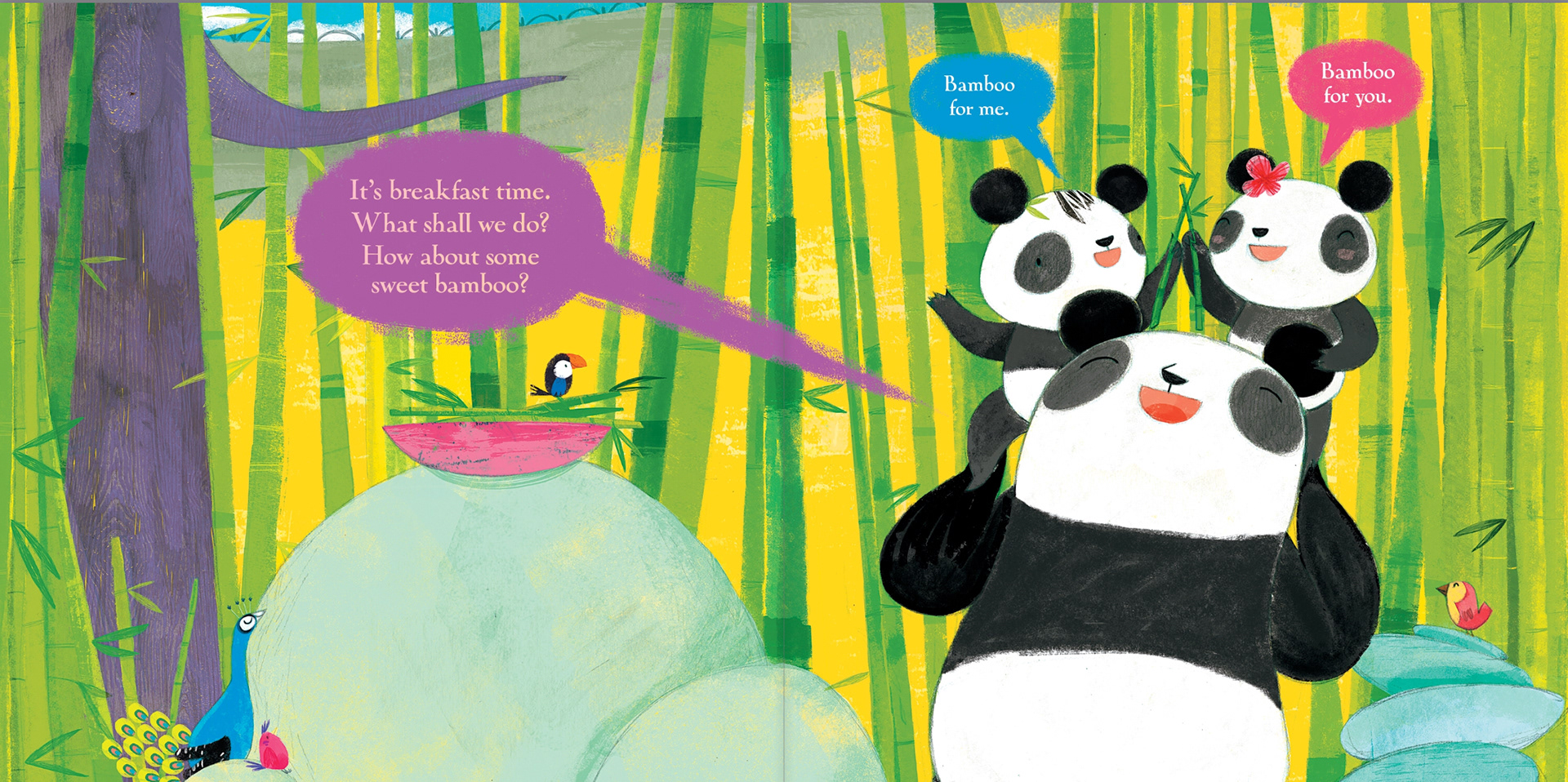 Illustrations for the album BAMBOO FOR ME, BAMBOO FOR YOU by Fran Manushkin and published by SIMON AND SCHUSTER NY