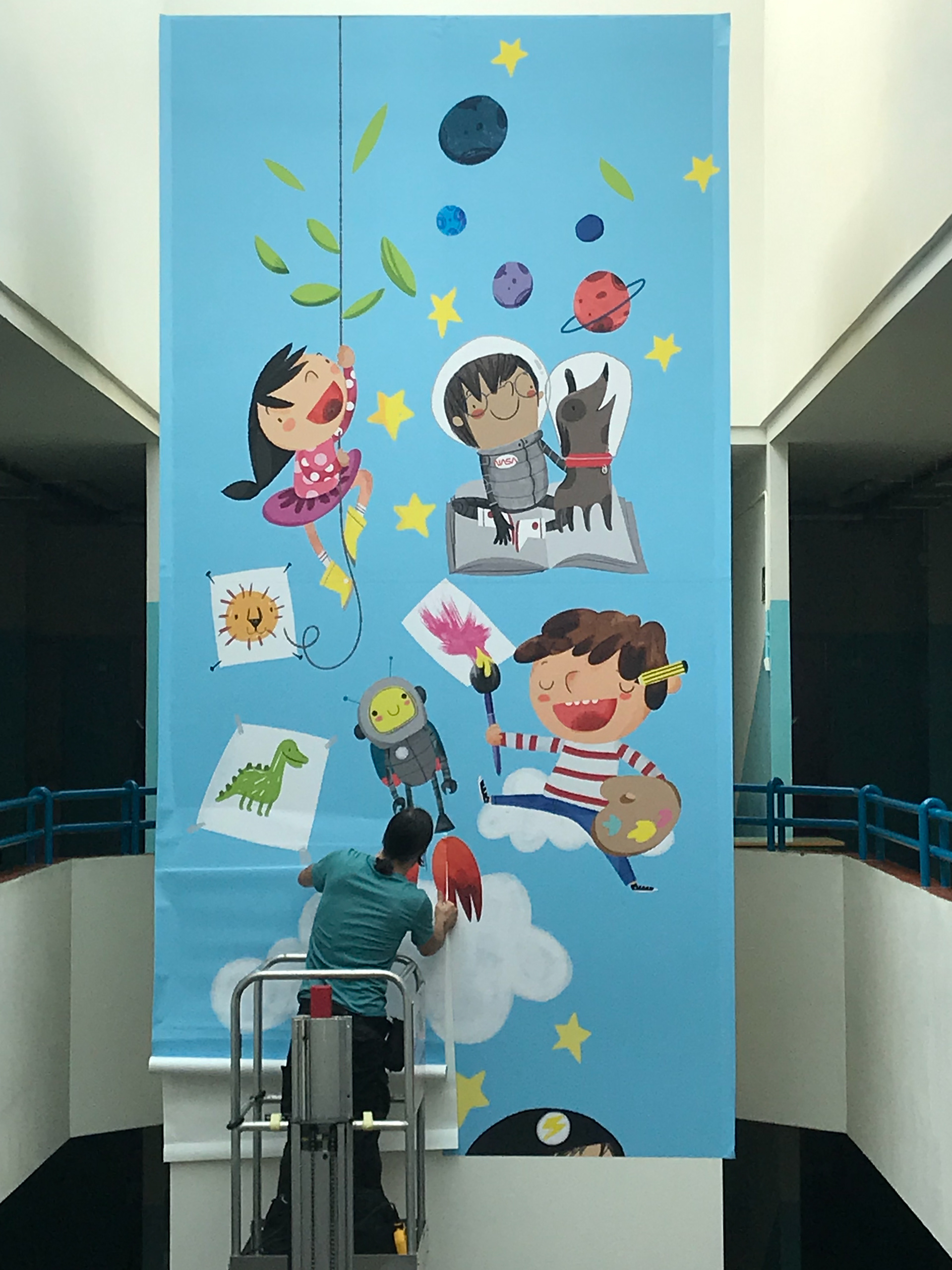 12 m illustration. Wall illustration for HONORABLE JOSEP TARRADELLAS SCHOOL.